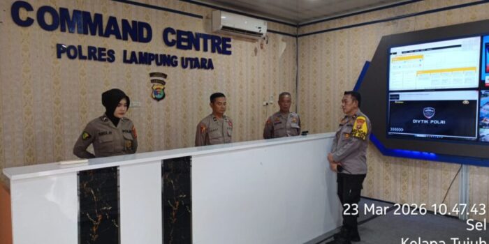 Personel Call Center 110 Polres Lampung Utara All Out Layani Masyarakat di Hari Ketiga Idul Fitri 1447 H