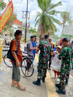 Peduli, Kodim 0401 Muba Bagikan Nasi Kotak Kepada Warga Dalam Rangka Jum’at Berkah,