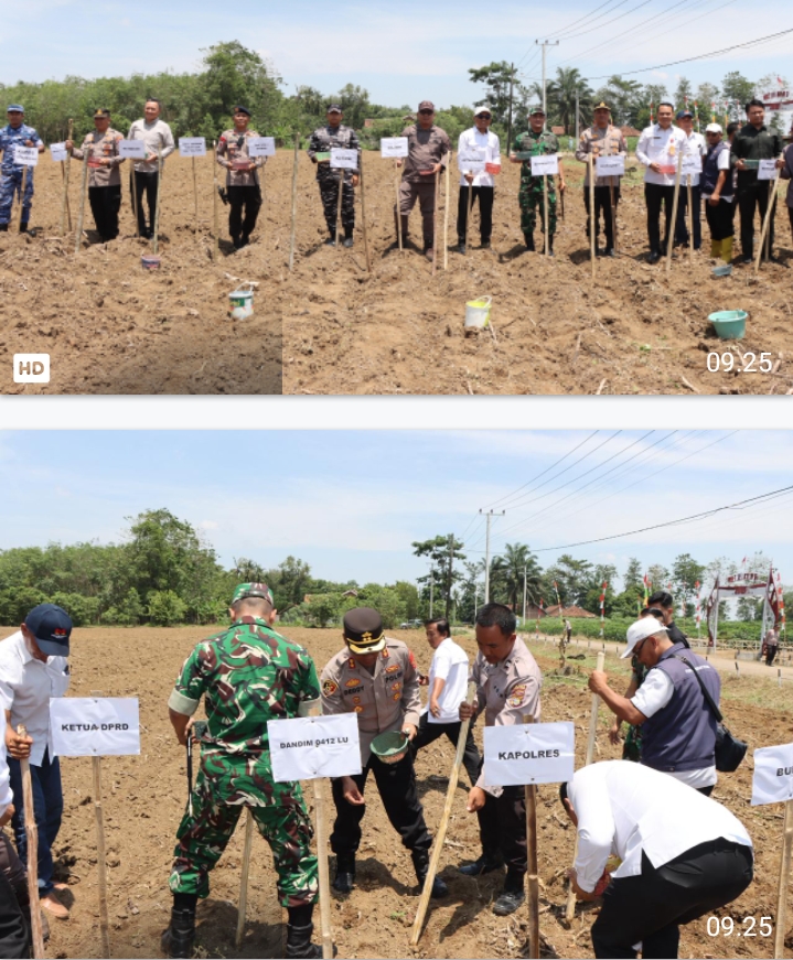 Lampung Utara HUD HUD- Guna mendukung swasembada pangan, Polres Lampung Utara menggelar penanaman Jagung Serentak Kuartal IV di Desain Semuli Raya Kecamantan Abung Semuli Kabupaten Setempat, Rabu (8/10/25).