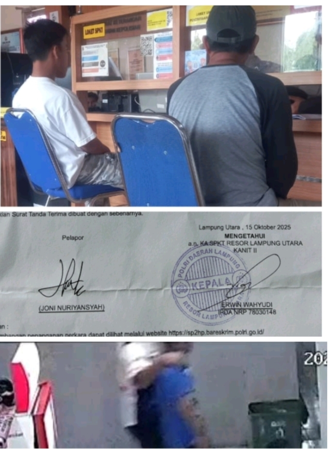 Lampung Utara, HUD HUD-  Joni Nuriyansah (46) orang tua dari Siswa kelas 2 SMP Negeri 7 Kotabumi (korban) melaporkan adanya penganiaya terhadap anaknya kandungnya, pada saat konser diatas senja dalam rangka pembukaan Turnamen Futsal Piala DPRD Lampung Utara. Rabu (15/10/2025)