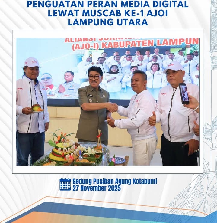 ‎Bupati Lampung Utara memberi Dukungan untuk Penguatan Jurnalisme Digital Bupati Lampung Utara, Dr. Ir. Hamartoni Ahadis, M.Si., turut hadir memberi dukungan penuh kepada jajaran AJOI. Ia menyampaikan bahwa peran media online kini semakin vital, bukan hanya sebagai penyampai informasi, tetapi juga sebagai pilar yang memperkuat literasi publik.