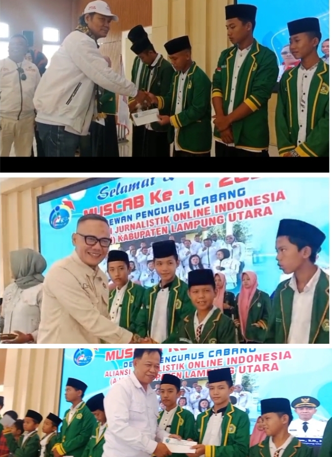 HUD HUD, Kotabumi – Dewan pengurus cabang aliansi jurnalistik online Indonesia (AJO-I) Kabupaten Lampung Utara menggelar musyawarah cabang (MUSCAB) ke 1 dan menyantuni anak yatim pondok pesantren AL HIRO Kotabumi serta kegiatan donor darah bersama PMI Kotabumi,di gedung Pusiban Agung Kabupaten Lampung Utara.Kamis 27 November 2025.