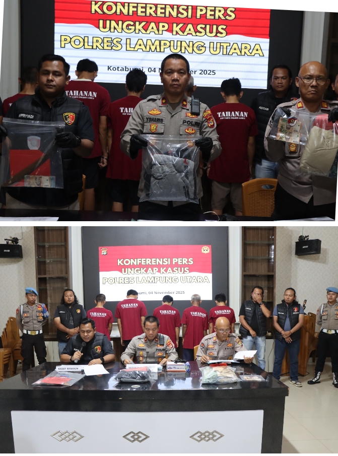 Hal tersebut disampaikan oleh Waka Polres Kompol Yohanis mewakili Kapolres Lampung Utara AKBP Deddy Kurniawan didampingi Kasat Reskrim AKP Apfryyadi Pratama dan Kasi Humas AKP Budiarto saat menggelar Konferensi Pers, Selasa (4/11/25).