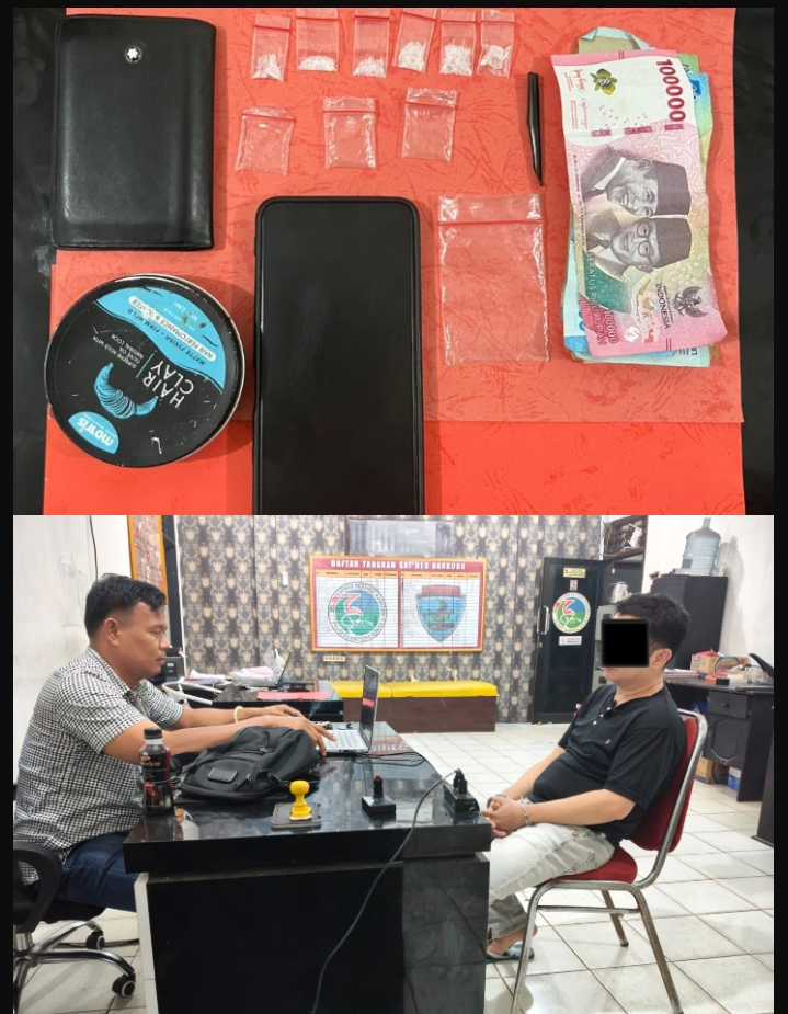 Dari tangan tersangka, petugas mengamankan enam paket narkotika jenis sabu, plastik klip berbagai ukuran, alat takar sabu, satu kaleng minyak rambut, serta satu unit handphone yang diduga digunakan untuk transaksi.