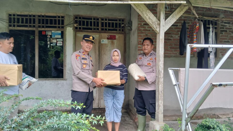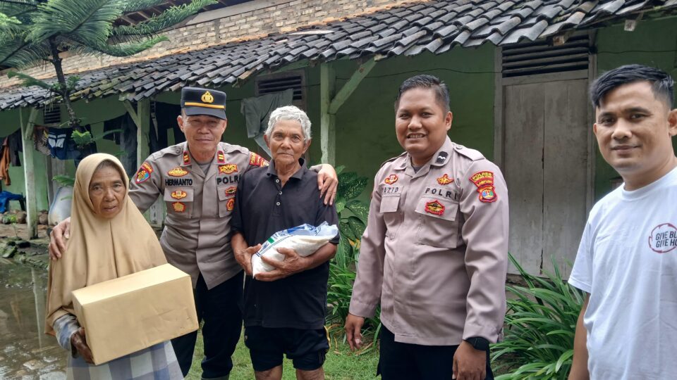 Banjir Rendam Permukiman, Polsek Kotabumi Utara Turun Langsung Salurkan Bantuan Sosial