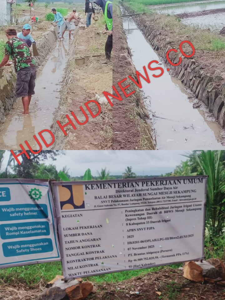 Terkesan pengawas maupun pihak BBWS Mesuji Sekampung dalam kegiatan peningkatan dan rehabilitasi jaringan irigasi utama tahun 2025 ini diduga Tutup Mata.