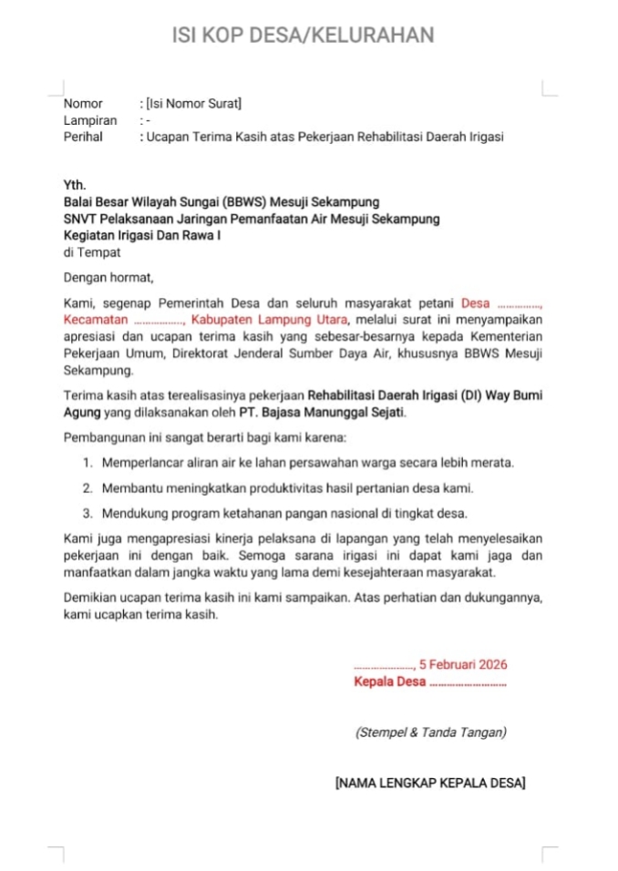 Rencana rekayasa pembohongan publik terbongkar pada siang hari ini, media ini sontak kaget setelah mendapati pernyataan Kepala Desa Cempaka bernama Rizki Puspa Dewi, yang menyampaikan aspirasinya bersama pihak Balai Besar Wilayah Sungai (BBWS) Mesuji Sekampung SNVT Pelaksanaan Jaringan Pemanfaatan Air Mesuji Sekampung pada Kegiatan Irigasi dan Rawa I. Dengan nomor 470 /38/01/53-LU/2025 – tanggal 5 Febuari 2026.