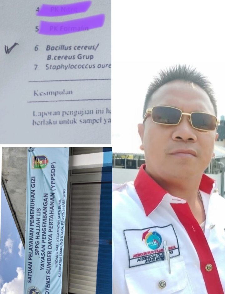 Defriwansyah Ketua DPC.Aliansi Jurnalistik Online Indonesia (AJOI) Kabupaten Lampung Utara mengatakan bahwa dirinya siang tadi Rabu 11 Februari 2026 ,dia mendapatkan Hasil Uji Laboratorium Balai Besar Pengawasan Obat dan Makanan Bandar Lampung terkait Uji Sampel Makanan Dapur MBG SPPG YPPSDP Hajjah Lis Sindang Sari dari ” Asisten 1 Bidang Pemerintahan dan Kesejahteraan Rakyat Kabupaten Lampung Utara Mat Soleh.Mpd “, di kirim bentuk PDF lewat HandPhone (HP).Bliau juga selaku Ketua Satgas Pengawasan dan Pembinaan Program Makan Bergizi Gratis (MBG) Lampung Utara,kata Defri.