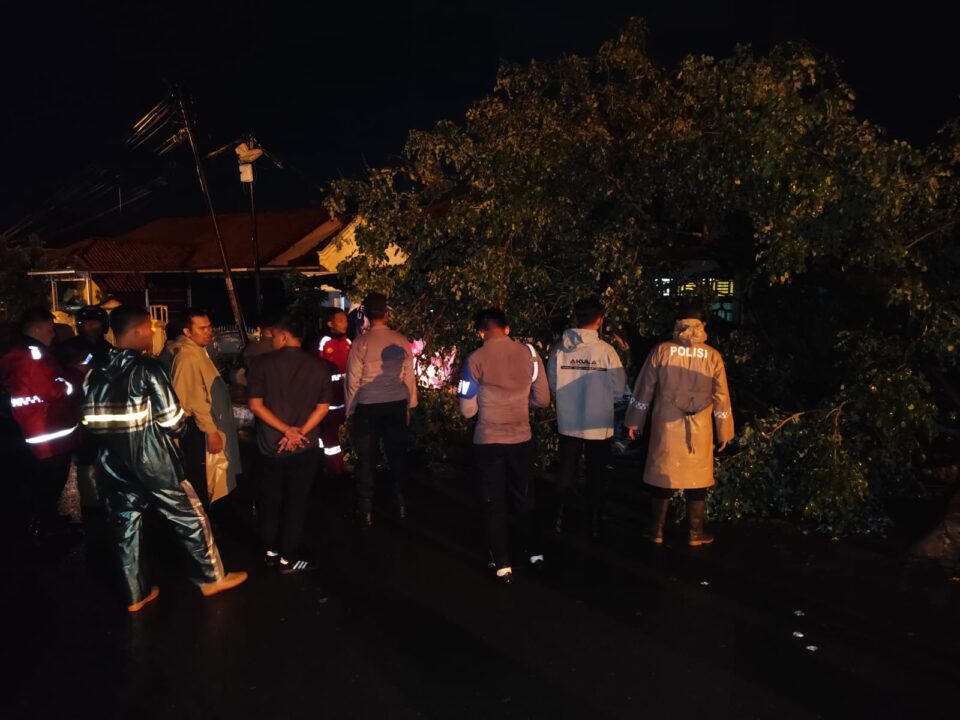 Lokasi pertama berada di Jalinsum, tepatnya di depan Makam Pahlawan Lama. Pohon tumbang sempat menutup badan jalan dan menyebabkan arus lalu lintas tersendat. Petugas segera melakukan pemotongan dan pembersihan material pohon agar jalan dapat kembali dilalui kendaraan.