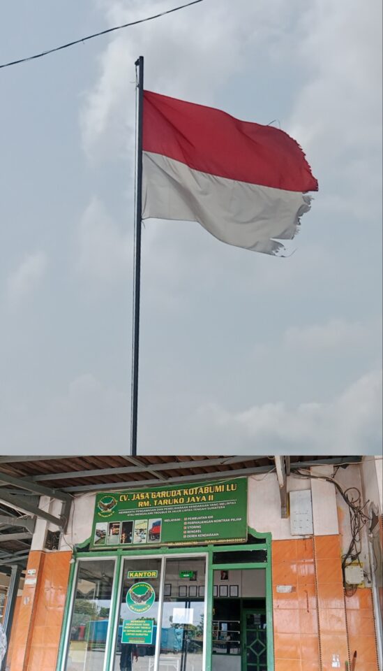 🚨 Diduga CV Jasa Garuda Melakukan pembiaran Bendera Merah Putih Robek ,Kusam,Lusuh Berbulan-bulan di Taruko Jaya 2
