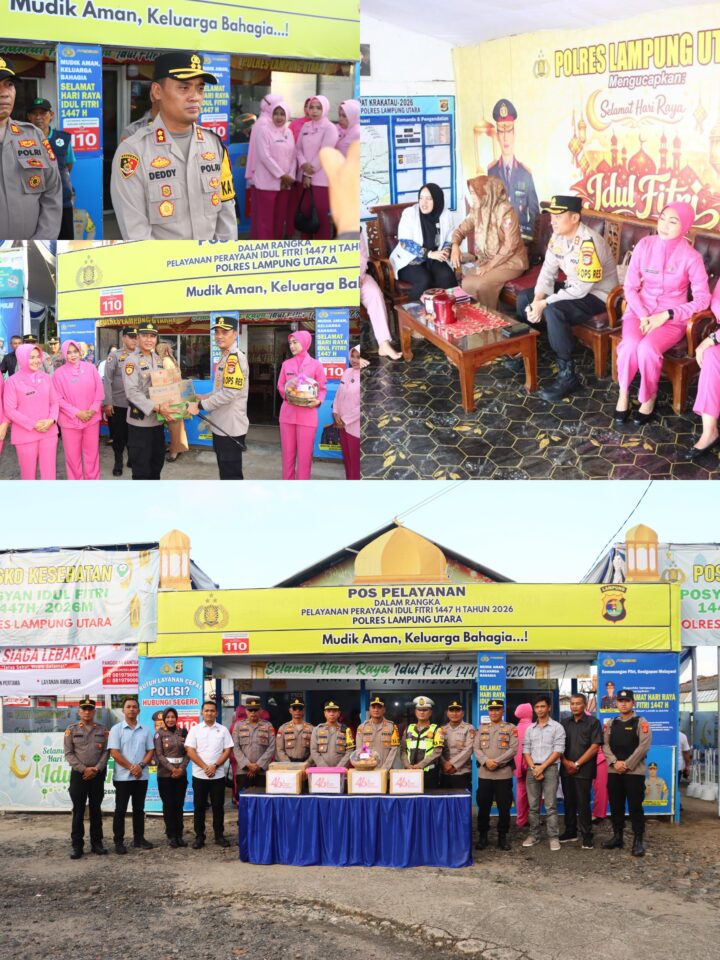 Hud-Hud Lampung Utara – Dalam rangka mendukung kelancaran Operasi Ketupat Krakatau 2026, Kapolres Lampung Utara, AKBP Deddy Kurniawan, S.H., S.I.K., M.M., M.Si., bersama Ketua Bhayangkari Cabang Lampung Utara, Pejabat Utama (PJU), serta anggota Bhayangkari, melakukan kunjungan ke sejumlah Pos Pengamanan (Pos Pam) dan Pos Pelayanan (Pos Yan), Selasa (17/3/2026).