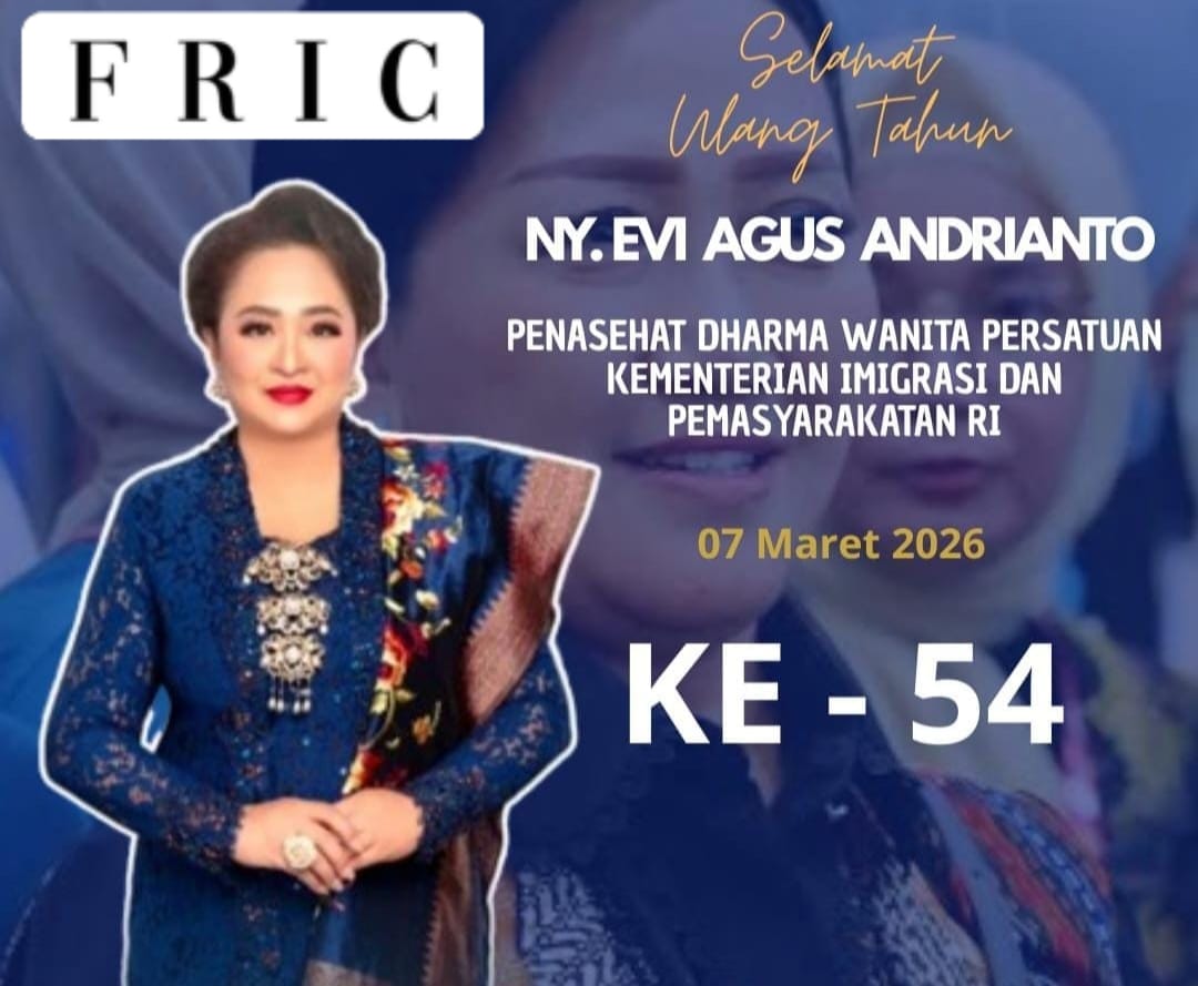 Dalam pernyataannya, Ketua Umum FRIC H. Dian Surahman menyampaikan rasa hormat dan apresiasi atas dedikasi serta pengabdian Ny. EM Agus Andrianto yang selama ini telah memberikan kontribusi nyata dalam mendukung berbagai kegiatan organisasi, khususnya melalui peran aktifnya di Dharma Wanita Persatuan Kementerian Imigrasi dan Pemasyarakatan RI.