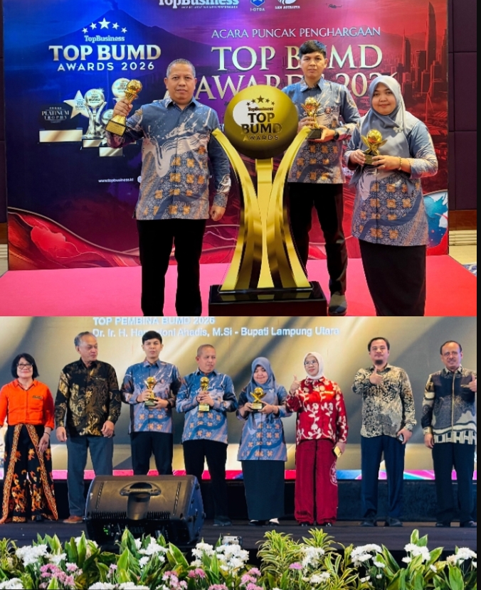 Atas dukungan Pemerintah Daerah tersebut, Bupati Lampung Utara menerima penghargaan sebagai TOP Pembina BUMD 2026. Penghargaan diserahkan kepada oleh Direktur Utama Bank Syariah Kotabumi mewakili Bupati Lampung Utara.