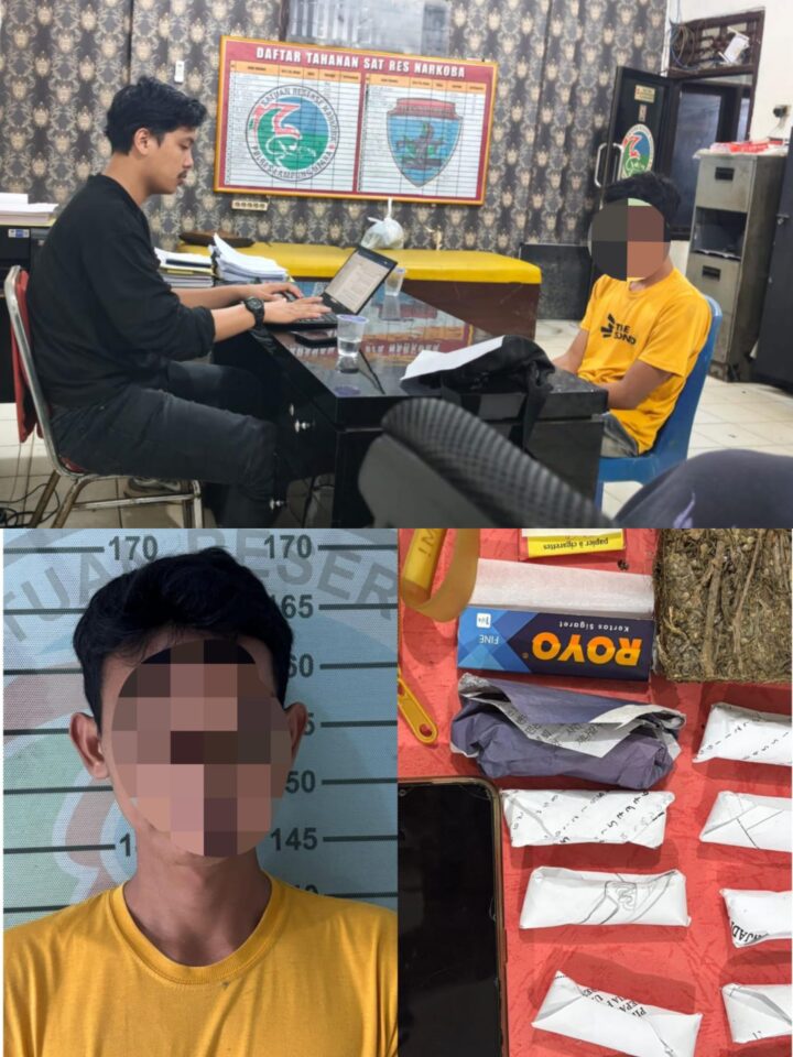 Penangkapan tersebut dilakukan sekitar pukul 16.00 WIB di Jalan Melati 7, Desa Candimas. Dari tangan tersangka, petugas berhasil mengamankan sejumlah barang bukti berupa 13 paket narkotika jenis ganja yang diduga siap edar.
