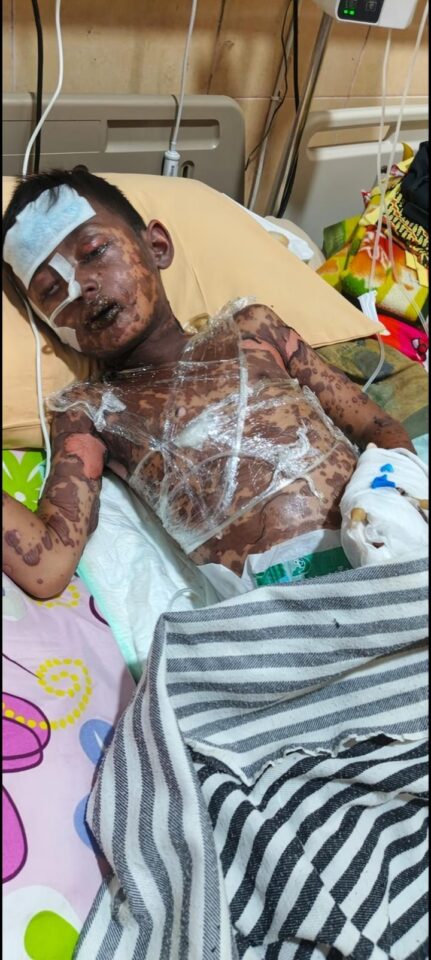 Lagi lagi nenek mengungkapkan, Refi sekarang badanya sudah di bungkus plastik karena melepuh itu,mulai selasa kemarin 07 april 2026 di rawat disana RS YMC.