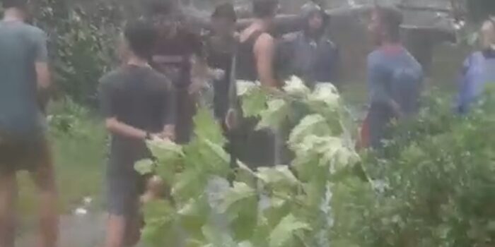 Lampung Utara –Hudhudnews.co Personel Polsek Kotabumi Utara melakukan pengecekan debit air Sungai Way Merah sekaligus menyalurkan bantuan sosial (bansos) kepada warga terdampak
